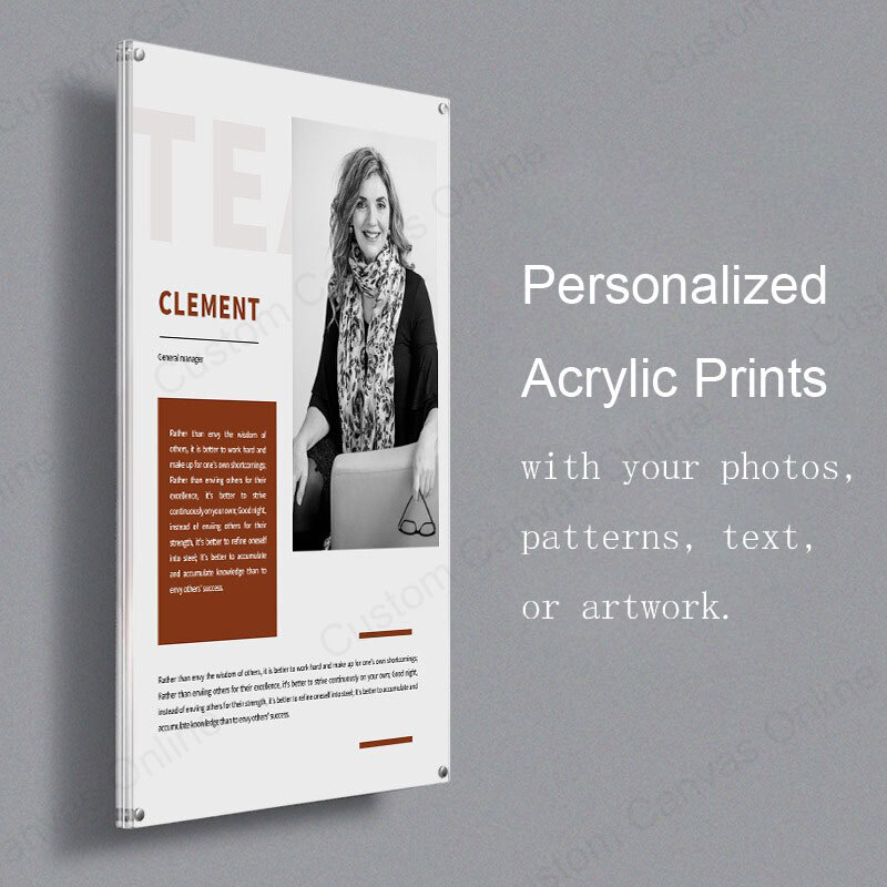 Transform your favorite photos, artwork, or designs into stunning personalized acrylic prints. Our custom acrylic prints use high-quality clear acrylic sheets to deliver vibrant colors, sharp details, and a sleek glossy finish. Perfect for preserving memories or showcasing creative works, these acrylic prints custom made for you provide a durable and elegant display solution.